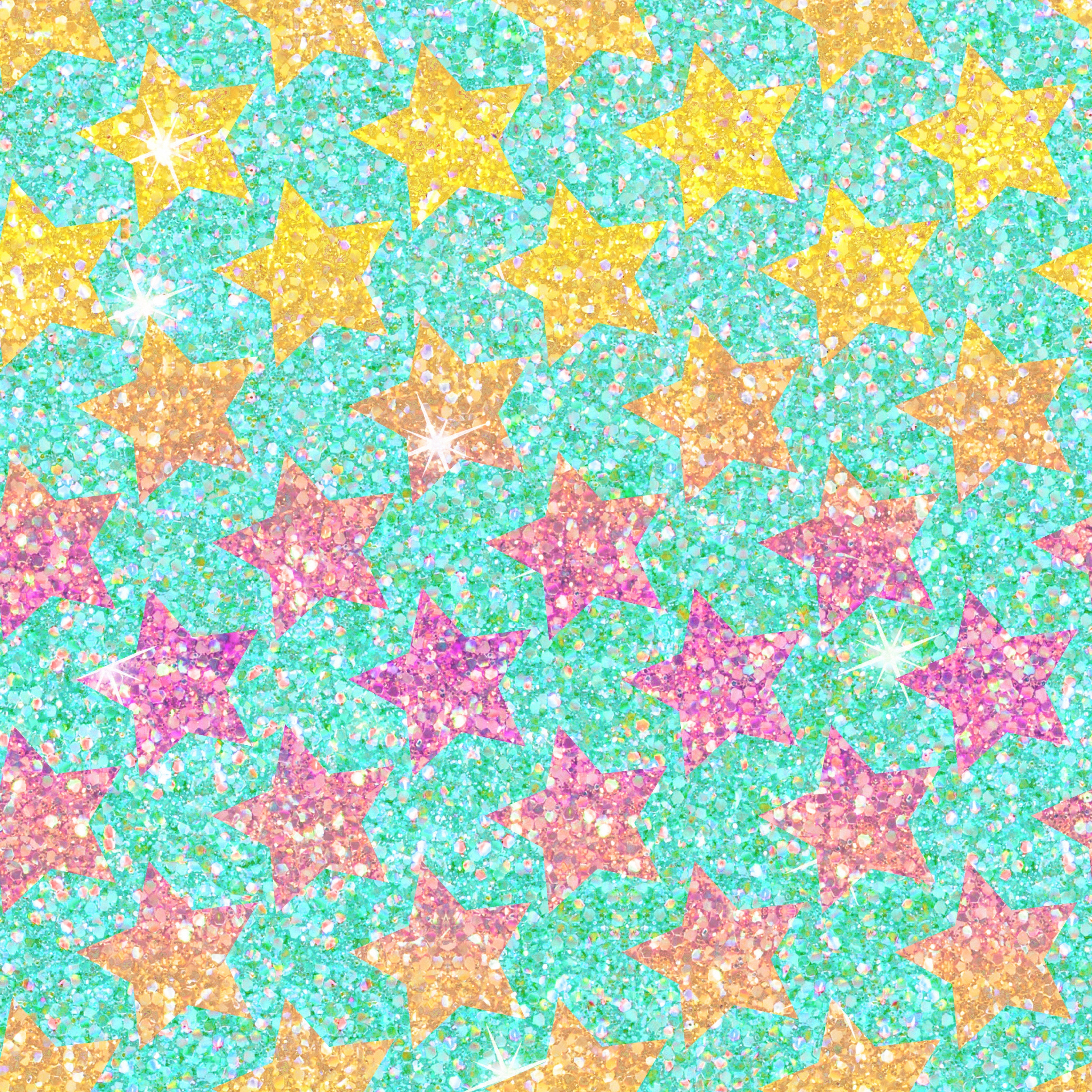 Glitter Stars Aqua Yellow Pink VINYL